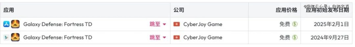 data.ai 的数据显示,「Galaxy Defense」最早在 2024 年 9 月于 Google Play 上线,之后在 2025 年 2 月上线 iOS 版。点点数据显示游戏发行账号“Cyberjoy Game”注册地为中国香港,进一步调查可以发现该账号还曾在中国台湾等市场上线了一款仙侠题材放置 RPG「凡人封神」,天眼查数据显示该游戏在国内由杭州烈酷科技登记著作权。目前游戏最近 30 天流水达到 217 万美元,其中大部分来自 Google Play(占比 72%)。最头部市场为美国(月流水占比超过 30%),其次为韩国(占比 22%)和日本(占比接近 12%)。