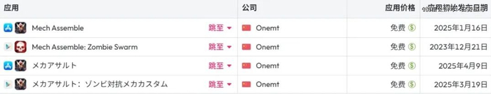 data.ai 显示「Mech Assemble」由 ONEMT 旗下账号(ONEMT 是龙腾简和的母公司),主要负责海外发行业务 | 图片来源:data.ai