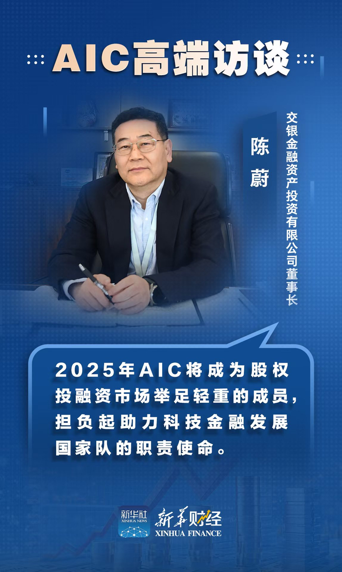 新华财经上海6月14日电(记者陶俊洁、王淑娟、闫鹏)近来,金融资产投资公司(AIC)股权投资试点持续扩大,各地AIC投资项目接连开花落地。交银投资是2017年成立的首批AIC机构之一,也是唯一一家总部在上海的AIC机构。交银金融资产投资有限公司董事长陈蔚日前接受记者专访表示,AIC成为了股权投资市场的生力军,不同于一般股权投资机构的“单打独斗”,通过与银行投贷联动,AIC能更好地融合商业银行多牌照功能,为企业提供综合金融服务。