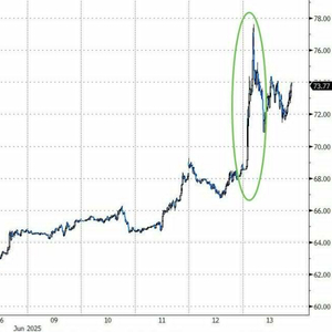 周五,市场对中东石油供应中断的担忧升级,推动油价大涨超7%,美油收涨7.62%至每桶72.98美元,盘中一度暴涨超14%,触及1月21日以来的最高点77.62美元。