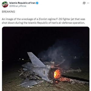 伊朗官方X账号发布称,以军“F35”被击落,并公布残骸照片