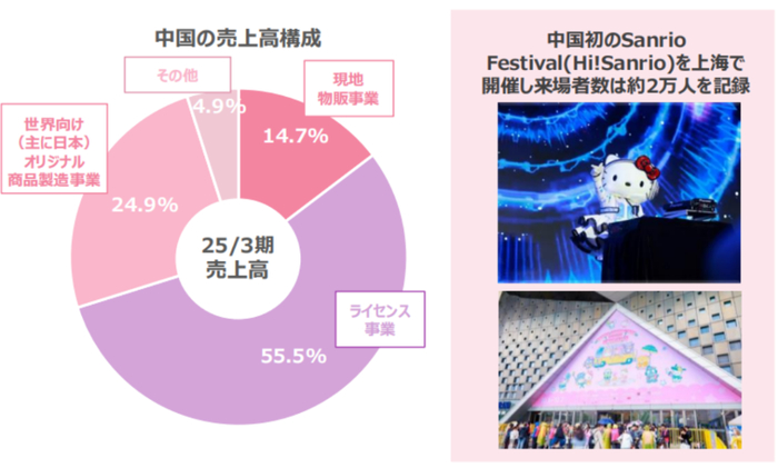 三丽鸥也在2025财年业绩报告中提到,中国区在Hello Kitty 50周年和大耳狗生日等重要的纪念节点的事件营销也取得了成果,其中,由阿里鱼自日本引入中国的首个“三丽鸥嗨翻节”在上海举办,到场人数创下了约2万人的记录。