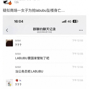 6月13日,一段聊天记录合集在微信群内传播,称“抢盒机、摔死一个”,并配有几段视频,其中包括有人在泡泡玛特售卖机前大打出手,以及一女子倒在商场地上的画面。随后微博上有网友对此内容进行截图,并配文“商场一女子为抢labubu坠楼身亡…”的文字。