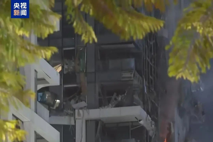 6月13日,在以色列特拉维夫,一栋大楼被导弹击中