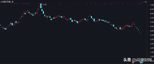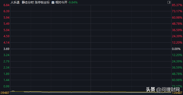 6月13日,人乐退(002336)进入退市整理期首日,股价低开83.47%,至收盘股价报收0.55元,跌幅85.09%,当日成交3491万元。