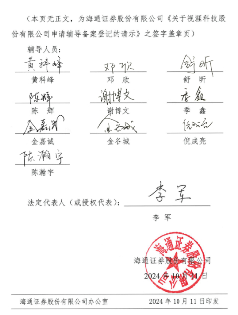 行家查看了项目相关文件:曾经的海通证券,于2024年10月11日与视涯科技签署上市辅导协议。这份辅导备案报告载明,项目组由黃科峰(组长)、邓欣、舒昕、陈辉、谢博文、季鑫、金嘉诚、金谷城、倪成亮、陈瀚宇共10名证券从业人员组成。海通证券明确提及,黃科峰、邓欣和陈辉拥有保荐代表人资质。