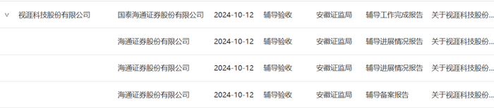 据证监会辅导项目信息,由国泰海通证券辅导的视涯科技股份有限公司(简称:视涯科技),进度显示为“辅导验收”。