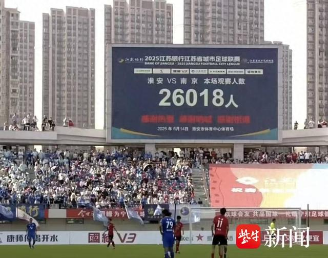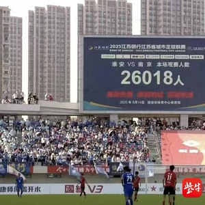 6月14日,苏超联赛第4轮展开激战,焦点战淮安与南京队的比赛场内场外都是话题,大家紧紧围绕着两地一家亲的故事而展开了一幅动人的画卷。回到比赛,淮安与南京两队共同为球迷上演了一场对攻大战,比赛的高节奏在苏超联赛中也能名列前茅。最终,两队凭借着上半时的进球,1:1握手言和,将友情进行到底。值得一提的是,本场比赛淮安奥体中心体育场坐进了26018名球迷,这也是淮安市足球赛事的新观赛纪录。