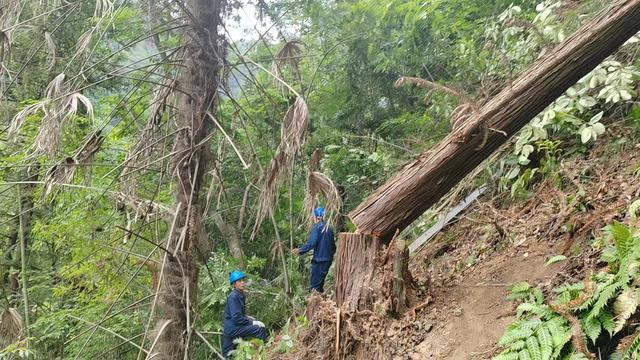 图为连日来国网岚皋县供电公司南宫山供电所组织专业队对辖区10kV线路设备巡视检查,修剪超高树木,清理线路通道,有效消除线路运行隐患。 唐瑞峰 摄影