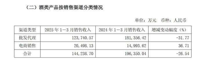 到了今年一季度,情况变得更加严峻。批发代理的销售收入为12.3亿元,同比大幅下滑31.77%,新增经销商215家,退出经销商257家,报告期末经销商数量减少至2621家,较2024年末减少42家。
