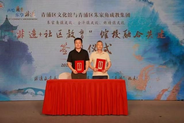 活动当天,青浦区文化馆与青浦区朱家角成教集团共同签署“非遗+社区教育”馆校融合共建协议,共同推进“非遗在社区”工作,共建青浦非遗社区教育新生态。