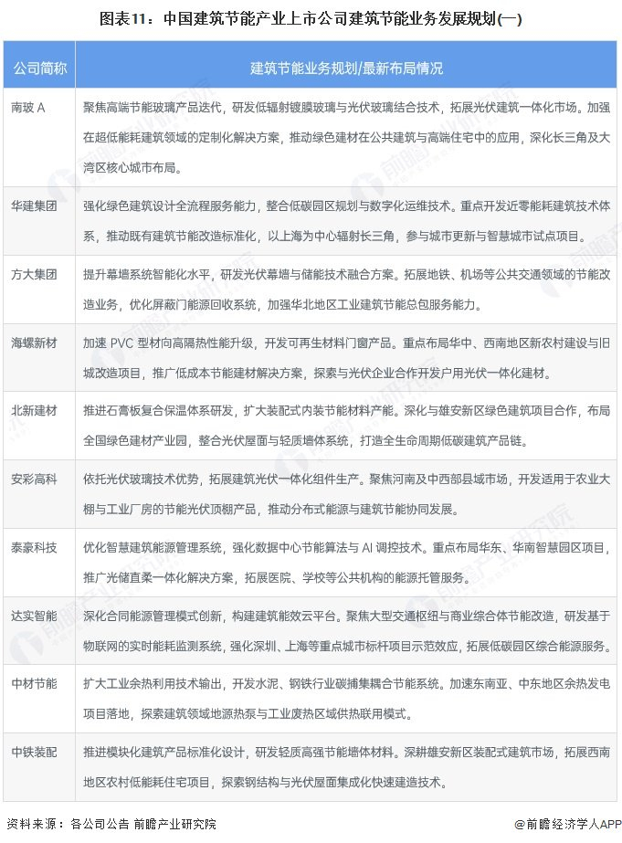 建筑节能产业上市公司业务规划对比