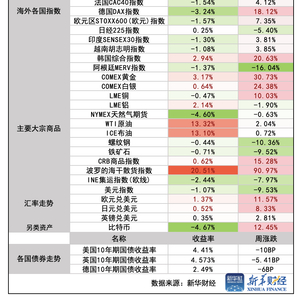 新华财经上海6月15日电(葛佳明) 本周(6月9日-6月14日),美国通胀数据低于预期,市场对美联储年内降息押注攀升,中东冲突升级,全球资产价格波动加剧,国际油价飙升,黄金价格因避险需求大幅上行,全球主要股指多数下跌。
