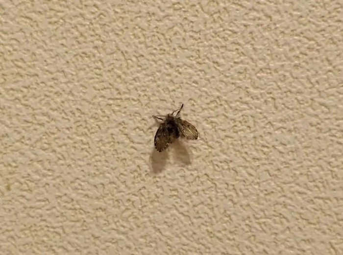 你很可能在卫生间墙上、浴室地漏或者厨房水槽旁,发现过下面这个长着毛茸茸翅膀的灰黑色小虫↓