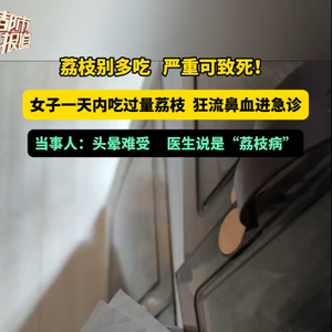 据报道,近日,广东一女子过量食用10斤荔枝,次日睡醒出现头晕不适、持续性鼻出血等症状,紧急就医后被诊断为“荔枝病”。