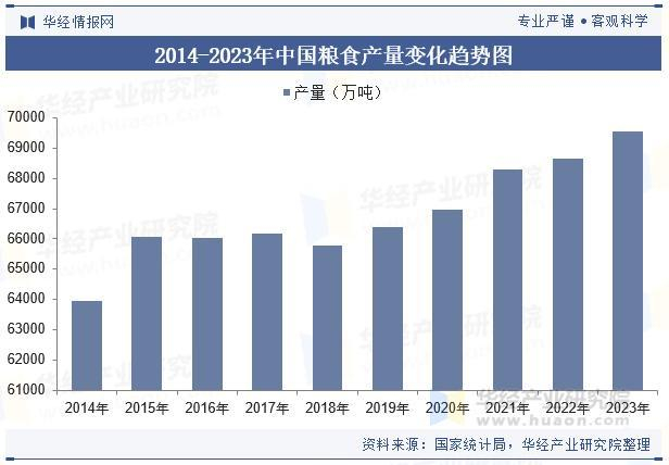 粮食是中央厨房行业的主要原材料,原材料的质量直接影响到中央厨房产品的最终品质。近年来我国粮食产量稳中向上,单产水平不断提高,粮食供给有保障。2023年我国粮食总产量增长至69540.99万吨,2014-2023年CAGR为0.93%。