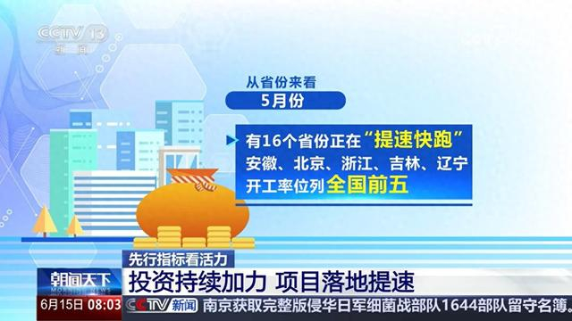央视网消息:国家信息中心最新发布的多项先行指标显示,今年5月我国经济多领域“热力”升腾,折射出经济向好向“新”、活力强劲。首先来看投资,5月份,政府投资持续加力,各类项目落地呈现提速态势。