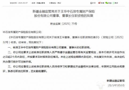 近日,运营商财经网从国家金融监督管理总局新疆监管局官网获悉,王华任中石油专属财产保险股份有限公司(简称中石油专属财险)董事长。下面,运营商财经网试图揭秘这个人。