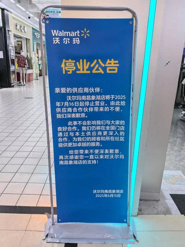 公开资料显示,沃尔玛超市在南昌曾布局7家门店,最后都一一落幕,其中2019年3月,沃尔玛解放西路店停业,这是南昌第一家沃尔玛撤店;2021年4月,沃尔玛青山南路店撤店;2021年7月,沃尔玛澄湖东路店撤店;2022年4月,沃尔玛新建分店撤店;2022年5月,沃尔玛青云谱三店西路店撤店;2024年5月,沃尔玛八一广场店撤店;再到2025年7月,沃尔玛象湖店撤店。