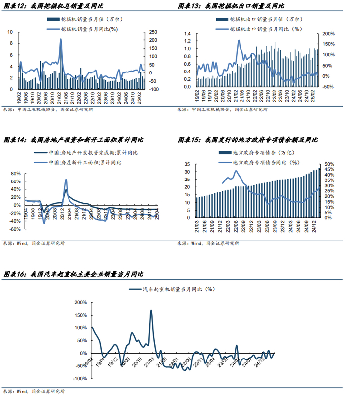 25年5月挖掘机销量1.82万台,同比+2.1%,其中挖掘机出口销量9810台,同比+5.4%,内销为8392台,同比-1.5%。5月挖机内销受去年同期高基数影响,短期承压,更新周期带动下的挖掘机内需中长期增长趋势不改,继续看好内外需共振下挖掘机销量持续增长。