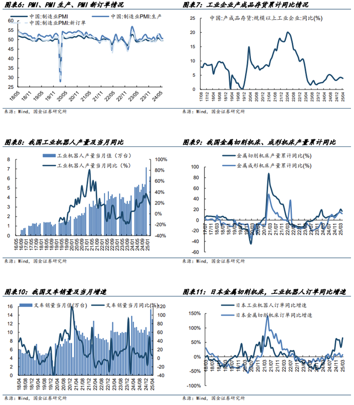 5月制造业PMI为49.5,环比+0.5pct,仍处于不景气区间。其中制造业生产PMI为50.7,环比+0.9pct;制造业新订单PMI为49.8,环比+0.6pct。关税政策转机,生产活动稍活跃,但整体需求仍偏冷。