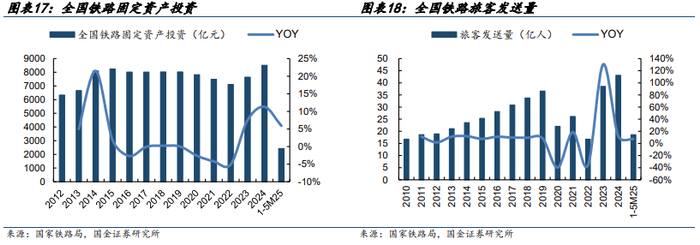1-5M25铁路固定资产投资、铁路旅客发送量同比+5.9%、7.3%,看好铁路装备需求持续复苏。