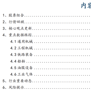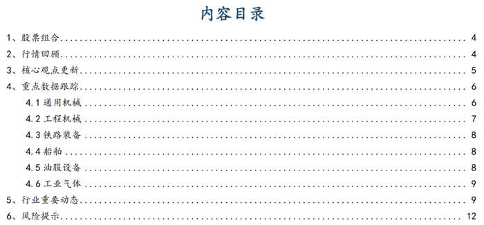 细分行业景气指标:通用机械(下行趋缓)、工程机械(略有承压)、船舶(高景气维持)、油服设备(底部企稳)、铁路装备(稳健向上)、燃气轮机(拐点向上)。