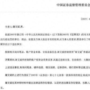监管部门对操纵市场违规行为“出重拳” A股市场超级“牛散”屠文斌因操纵股票遭证监会处罚