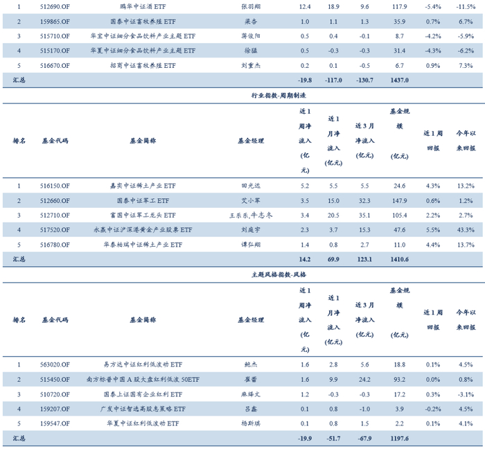 附录1:本周各类型ETF净流入TOP5产品信息一览