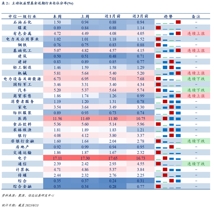 主动权益产品行业动向:近一周石油石化、基础化工仓位上调较多