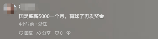 对此,有网友表示,国足成绩低迷(如2024年亚洲杯0胜0进球、2025年世预赛输给印尼后出局),薪资应与水平匹配。
