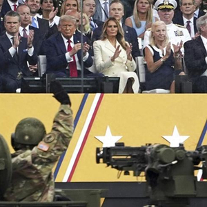 游行开始前,特朗普和第一夫人梅拉尼娅·特朗普在《向统帅致敬》的旋律和21响礼炮的伴奏下走上舞台,副总统万斯夫妇、国务卿鲁比奥以及国防部长皮特·赫格塞斯也出席了游行。