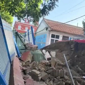围墙倒塌(视频截图)