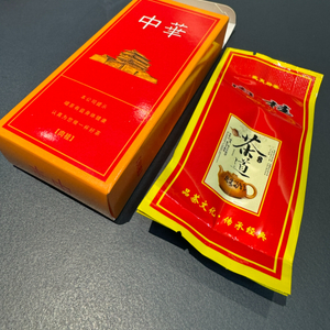 ▲新京报记者从电商平台购买的一款茶叶,被包装在类似香烟品牌“中华”的盒子中。新京报记者 王子扬 摄