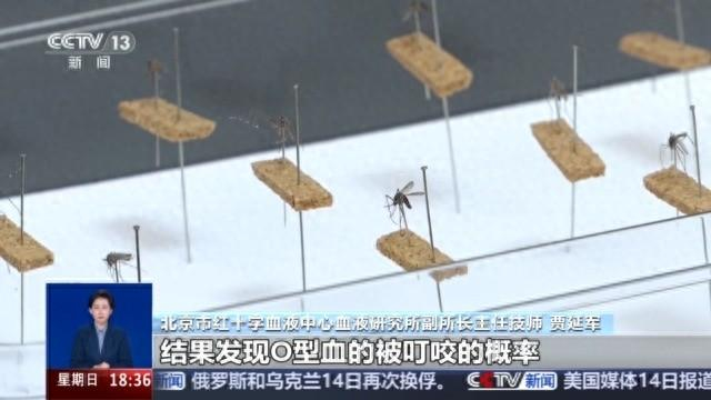 北京市红十字血液中心血液研究所副所长主任技师 贾延军:早在20世纪70年代就有科学家做过血型与蚊子偏好的一种实验,它让不同血型的人暴露,将手臂暴露于蚊子的叮咬,结果发现O型血的被叮咬的概率只比A型血高8%,那么这一差异造成的原因可能主要是由个体差异引起的,像这个气味,包括他的出汗,所以说并不能证明血型的差异,可以造成蚊子叮咬的偏好。