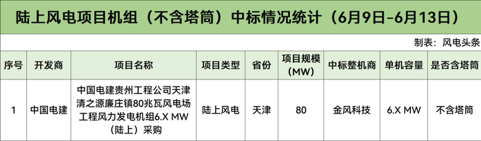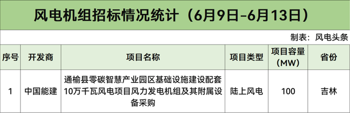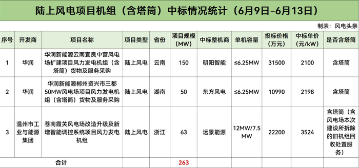陆上含塔筒最低2100元/kW!本周843MW风机开标!【风电项目·周分析】