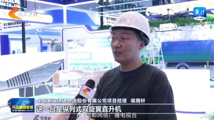 本次我们是带来是两台无人机设备,这一台是纵列式双旋翼直升机,还有一台是多旋翼无人机。那么我们这些无人机现在主要运用于乡村振兴、城市配送以及医疗资源配送等等一些场景。