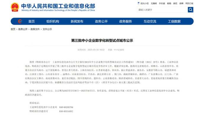第三批中小企业数字化转型试点城市名单日前完成公示,全国共计35个市(区)入围,我省洛阳市、许昌市位列其中。加上此前入选的郑州(第一批)、新乡和鹤壁(第二批),我省共有5市跻身试点城市,总数居全国前列。
