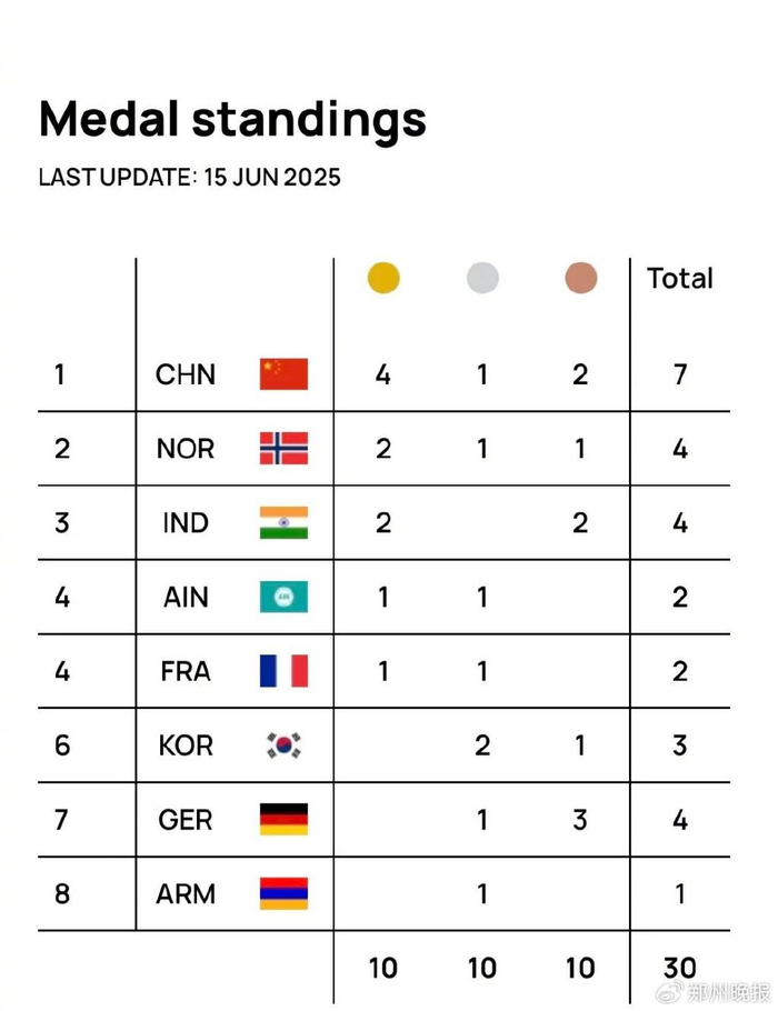 当地时间14日,2025年国际射联射击世界杯德国站结束了最后一个比赛日的争夺。在最后一个项目、10米气手枪混合团体比赛中,中国组合姚千寻、胡凯发挥出色,为中国射击队再夺一枚金牌。最终,中国队以4金1银2铜共7枚奖牌的成绩结束了本站世界杯,在金牌榜和奖牌榜均排名首位。