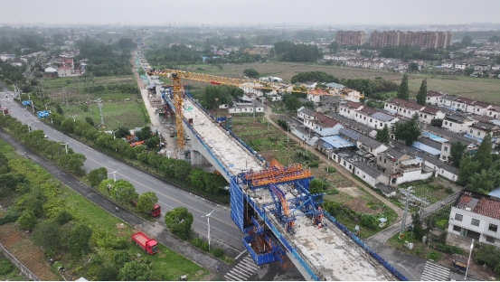 日前,北沿江高铁(沪渝蓉高铁上海至南京至合肥段)扬州段跨新甘泉路连续梁合龙。