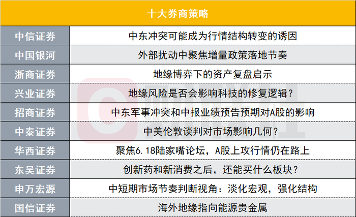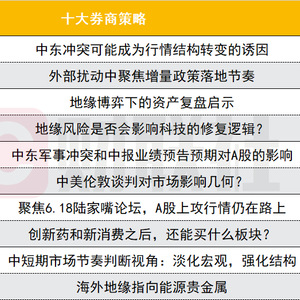财联社6月15日讯,以伊冲突使得中东局势进一步陷入胶着,全球聚焦之下,大宗商品乃至资本市场将如何回应?周一开始之前,各大券商纷纷给出最新解读,请看本周十大券商策略。