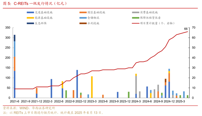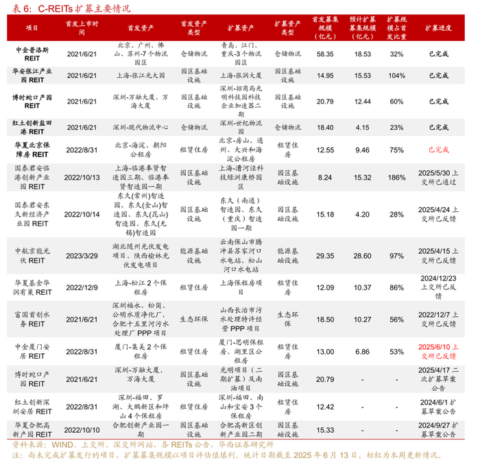 一级市场方面,2025年以来已有8个项目上市,募集资金134亿元。截至2025年6月13日,年内潜在发行项目12-15单左右,预计总发行规模200亿元以上,市场总规模将突破2200亿元。