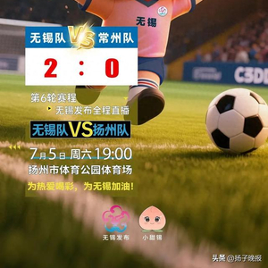 6月15日晚,2025年江苏省城市足球联赛第四轮比赛,无锡队坐镇主场以2:0战胜常州队。无锡队取得2025年江苏省城市足球联赛开赛以来的首场胜利!