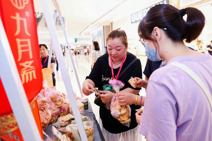 另一方面,展销联动点燃消费热情。现场集中展示区内,络绎不绝的消费者穿梭其间,近距离欣赏产品工艺、感受文化内涵,为心仪产品投票。花车市集区,17家伴手礼企业精心布展,丰富的试吃试用体验吸引许多消费者驻足,人们还可通过扫码或线上平台即时下单。“边逛边买、即试即购”的模式,极大提升了消费体验的便捷性与趣味性。