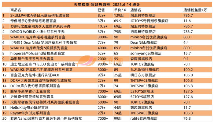 接下来,本期我们继续观察盲盒与手办的爆款产品,随后各类文创产品与店铺的一周榜单,以及国产IP相关店铺表现。