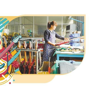 在乐器制造行业摸爬滚打了20年的山东省雅特乐器股份有限公司总经理赵卫国同样在品牌领域不断深耕。雅特乐器作为中国乐器协会电吉他技术研究会主任单位,积极参与《高端电吉他制作》团体标准、《国家电吉他质量标准》等国家级行业标准编写,支持企业自主开展技能人才评价,申报“吉他制作工”新职业规范,增强了鄌郚吉他产业在全国的话语权。