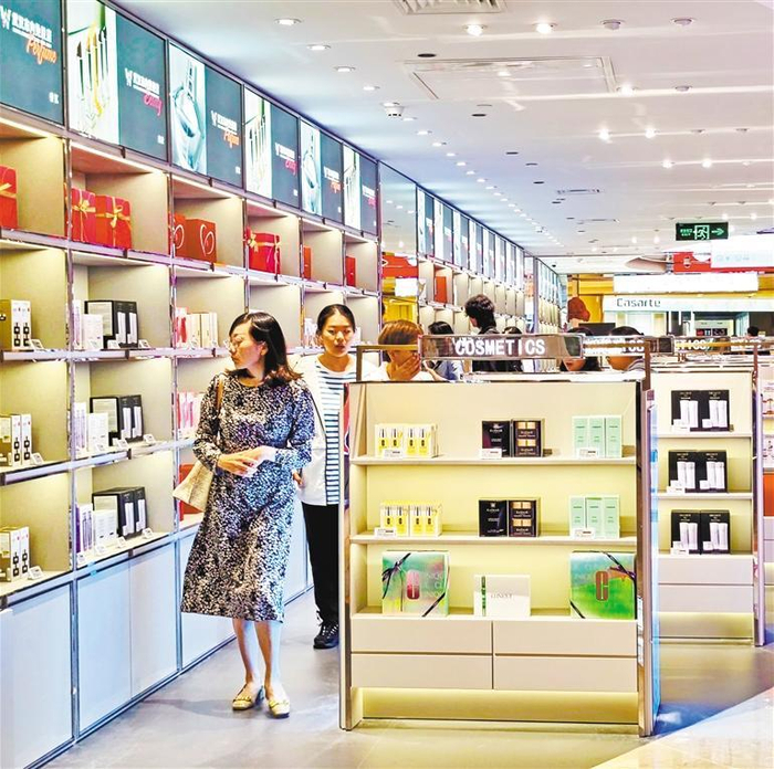 ▼5月30日,湖北省武汉市内首家免税店试营业。该店面积约1200平方米,商品兼具国际化与本土化特色,让市民不出境也可直接购买国外商品。