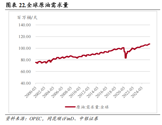 未来全球原油需求量保持一定的小幅增长,但由于碳达峰,资本开支必然会受限制,即产能供给较慢,再加上石油是不可再生资源,石油价格从长期角度来讲,是稳中有升。
