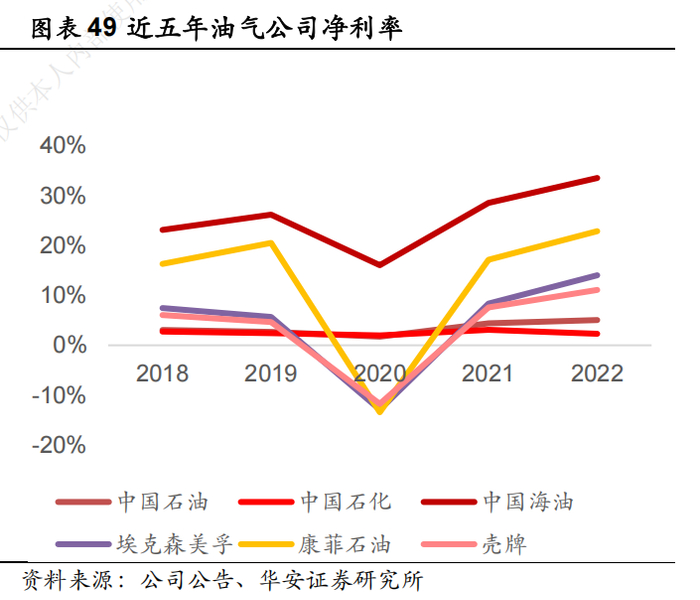 由于桶油成本相当低,公司的净利率在可比的公司中(中国石油、中国石化、埃克森美孚、康菲石油、壳牌),净利率最高。