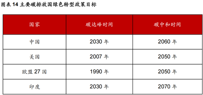 2)、各国碳排放绿色转型时间表